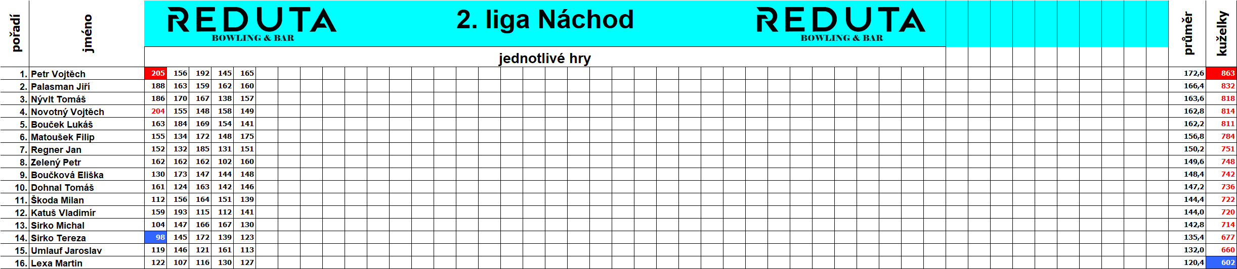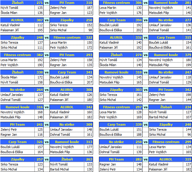 Výsledky Vyšší Pralesní ligy
